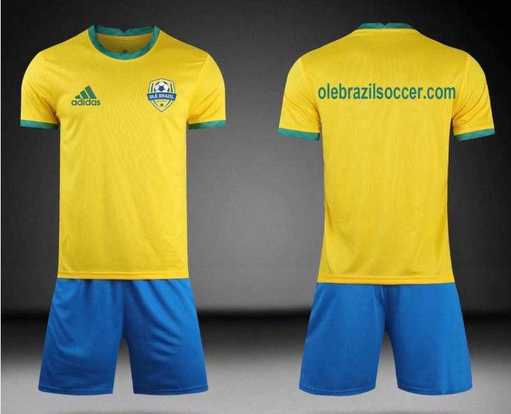 OLÉ BRAZIL STORE OLÉ BRAZIL UNIFORM SIZE CHART OLÉ BRAZIL UNIFORM OLÉ BRAZIL UNIFORMYELLOW JERSEY AND BLUE SHORTS$25.00